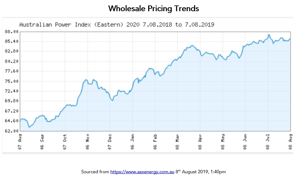 Spot market pricing has increased recently, with baseload generation outages in June for NSW, QLD and VIC, importantly, the Loy Yang A2 generator in VIC will be out of production until December 19, this may extend into 2020. Hydro generation is at risk with lower storage levels at Snowy and HydroTAS.